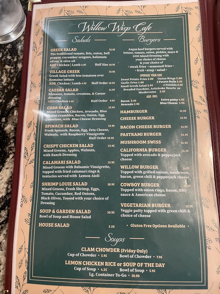 Service here is exceptional, with attentive staff ensuring a welcoming ambiance, even during the bustling lunch rush. Patrons rave about the friendly atmosphere and generous portions that make every meal memorable. Whether you're stopping by for breakfast or a late brunch, Willow Wisp Cafe promises to leave you satisfied and eager for a return visit!